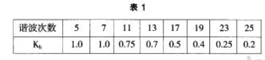 國家標準 GB/T14549—93中推薦 ,兩個(gè)諧波源的同次諧波 電流在 同一地點(diǎn) 的同一相上疊加 ,當相 位不 確定 時(shí)可按下式 進(jìn)行計算 :Ih=、/Ih1+I}l22+Kh1IhlI}l2 式 中 Kh系數按表 2選取 。I 和 I分別為諧波源 1和 2的 第 h次諧波 電流 ,單位為 A。