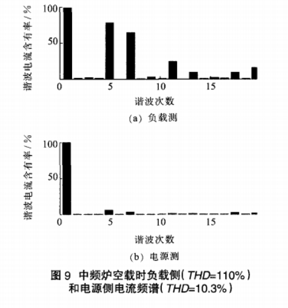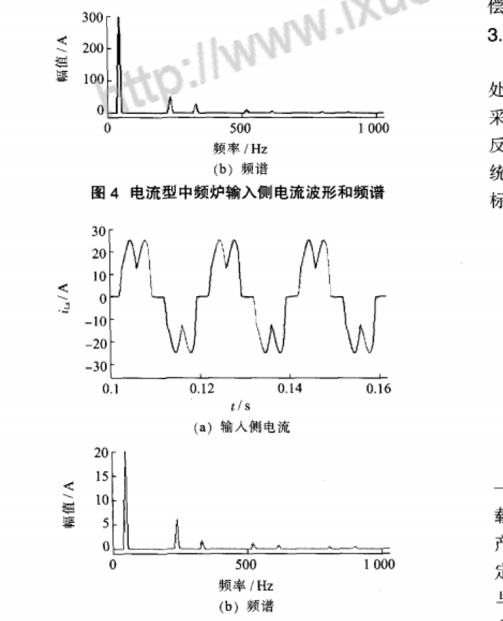 由式(1)可知.對于6脈動(dòng)的中頻爐來(lái)說(shuō).它可產(chǎn)生大量的5次,7次,l1次,l3次,17次,19次等諧波,可歸納為6k_+l(為正整數)次諧波,各次諧波有效值與諧波次數成反比.且與基波有效值的比值為諧波次數的倒數.