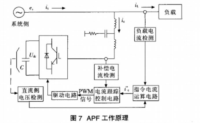 為了使中頻爐產(chǎn)生的諧波對公共電網(wǎng)的影響符合設備使用地供電系統的要求.可采取積極有效的治理措施以消除諧波污染,具體治理措施如下6]:一是變壓器采用Y/Y/A接線(xiàn)方式對于大容量的中頻爐.其供電變壓器可以采用Y/Y/△接線(xiàn)方式.通過(guò)改變整流器交流側變壓器的接線(xiàn)形式來(lái)抵消較低次的特征諧波但成本較高。二是采用LC無(wú)源濾波器.主要結構是用電容器與電抗器串聯(lián)起來(lái).組成LC串聯(lián)回路,并聯(lián)于系統中。這種方法比較傳統.既可補償諧波,又可補償無(wú)功功率.結構簡(jiǎn)單,一直被廣泛使用。但補償特性受電網(wǎng)阻抗和運行狀態(tài)的影響。易和系統發(fā)生并聯(lián)諧振.且只能補償固定頻率的諧波.補償效果也不甚理想。三是采用APF,這是諧波抑制比較新的方法[7]。APF是一種動(dòng)態(tài)諧波補償設備,具有高度可控性和快速響應性.能對頻率和幅值都變化的諧波進(jìn)行跟蹤補償.動(dòng)態(tài)特性好,且補償特性不受阻抗的影響,諧波補償效果最佳.因而受到廣泛重視。